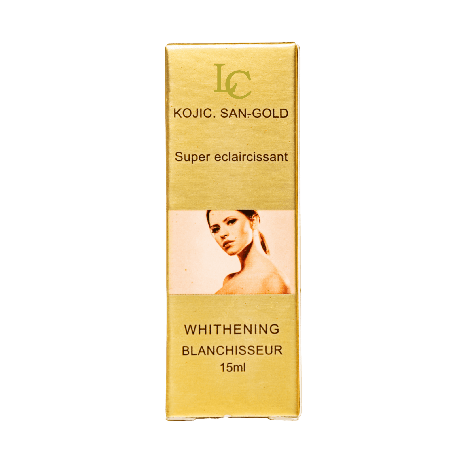 Le concentré Kojic San-Gold est un soin éclaircissant conçu pour uniformiser le teint et réduire les taches noires sur la peau. Sa formule innovante à base d’acide kojique agit efficacement sur les zones ciblées pour offrir un teint plus lumineux et homogène.