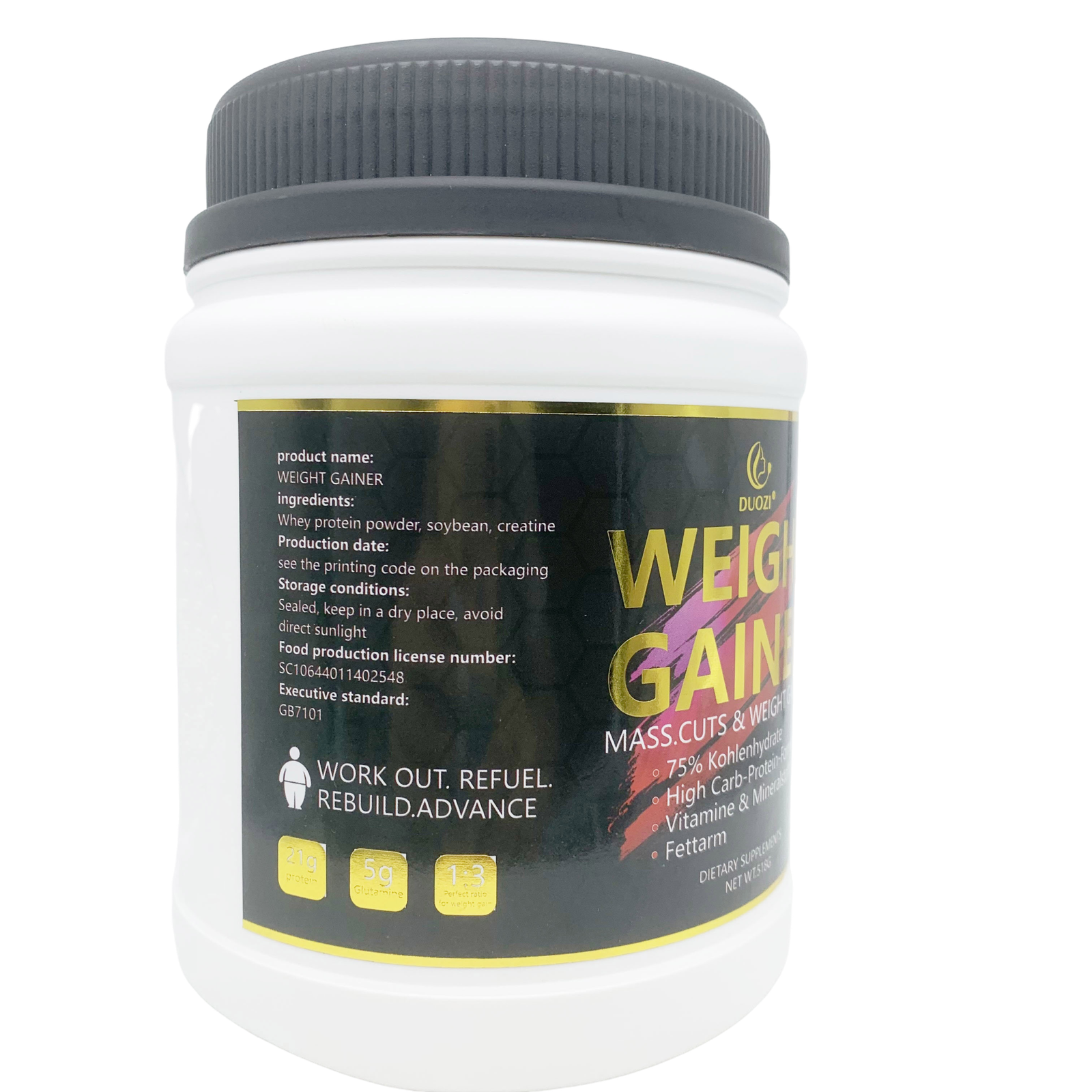 Optimisez votre transformation physique avec la poudre **Weight Gainer** de Duozi, une formule avancée conçue pour ceux qui peinent à prendre du poids ou souhaitent augmenter leur masse musculaire. Ce complexe haute performance combine des protéines de qualité, des glucides lents et des acides aminés essentiels pour soutenir vos entraînements les plus intenses. Grâce à son ratio idéal 1:3 entre protéines et glucides, ce supplément assure un apport calorique maîtrisé pour un développement musculaire harmonieux et une récupération accélérée après l’effort.